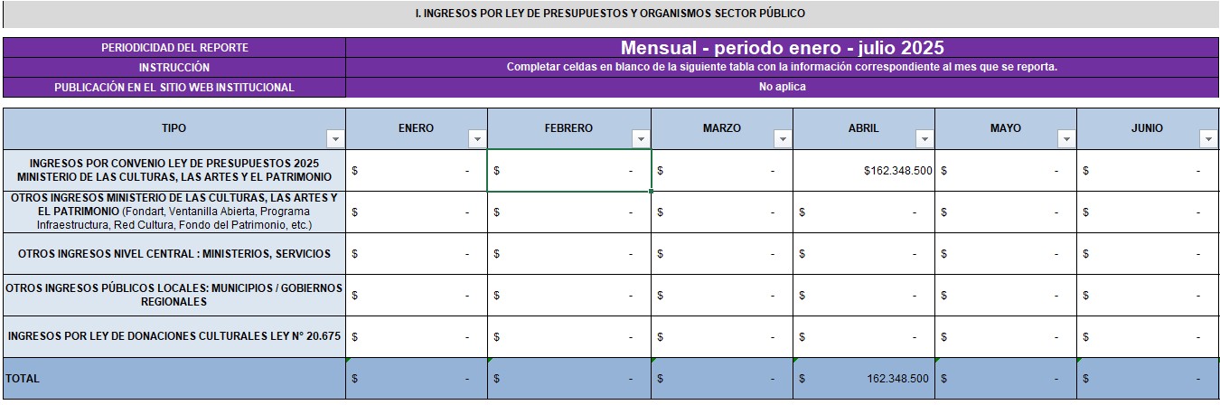 - Ingresos por ley de presupuestos y organismos sector público
